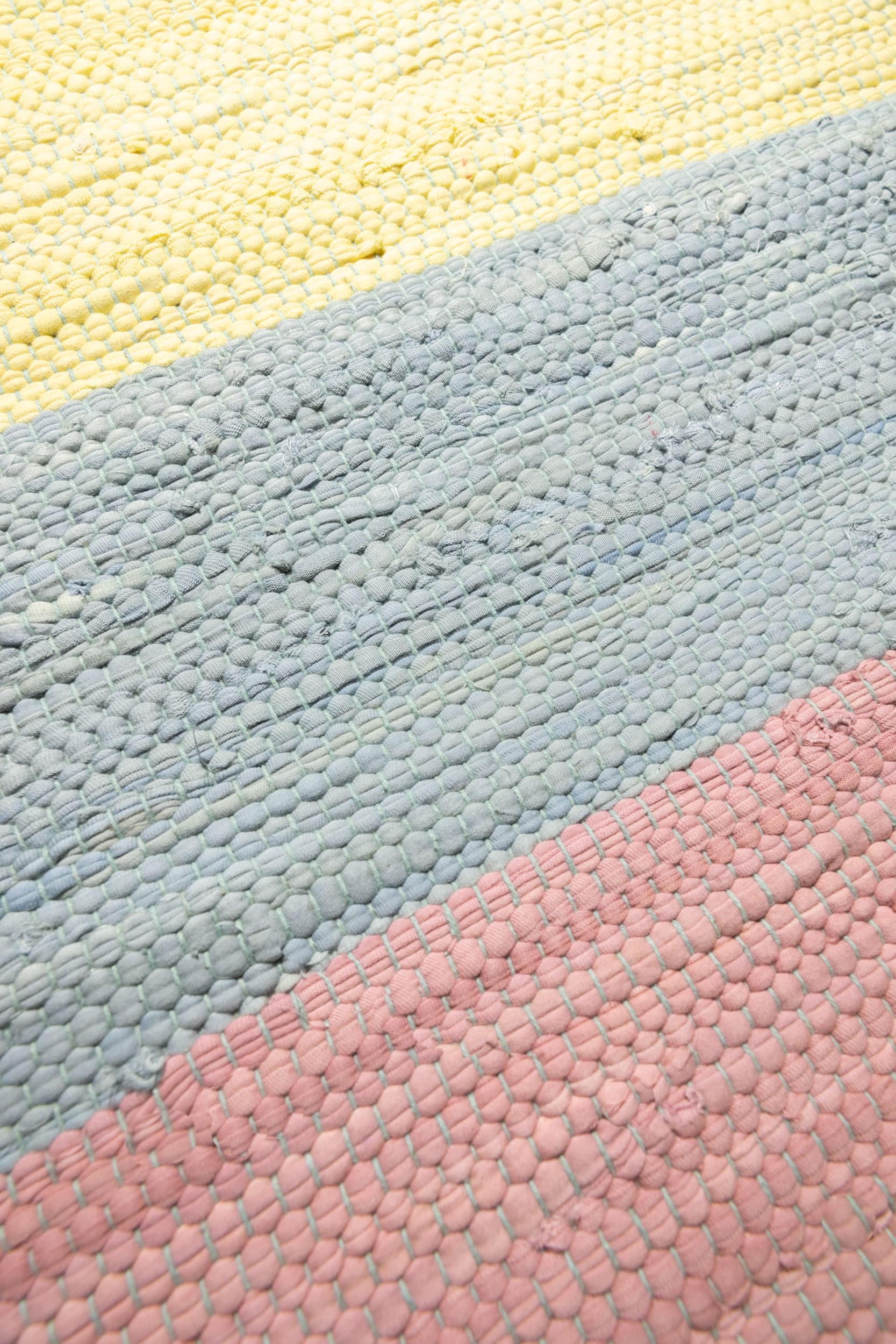 The cotton used to create the Cotton Rug is sourced as off-cuts from the fashion industry. These off-cuts are created as a by-product when T-Shirts or other fashion products made from cotton are produced.